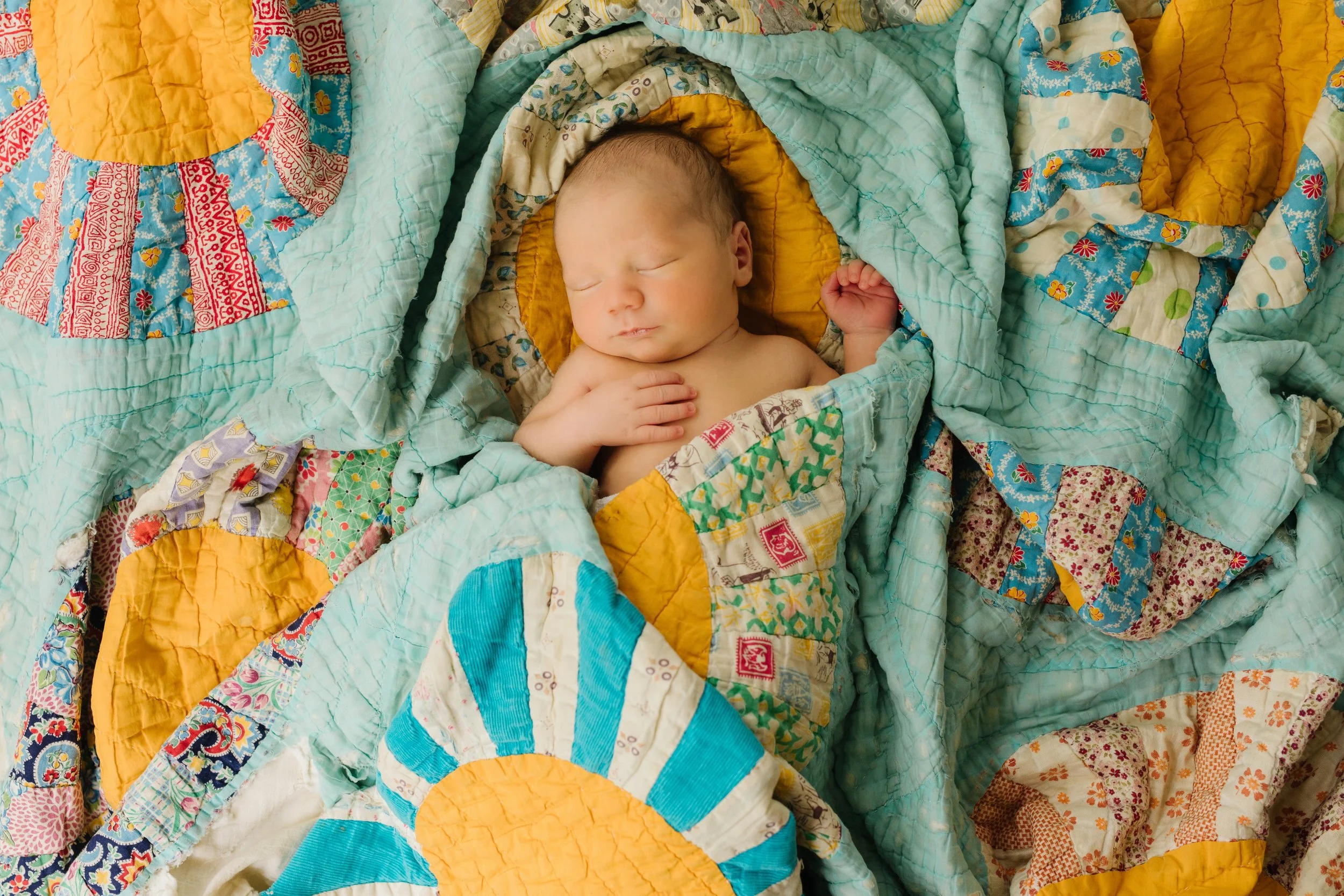 Baby Walker’s mother collect’s old quilts. This particular quilt was made by baby Walker’s great grandmother and handed down to his mother. Of course we had to include in his session. Great paired with a white background or your home’s wood floors.